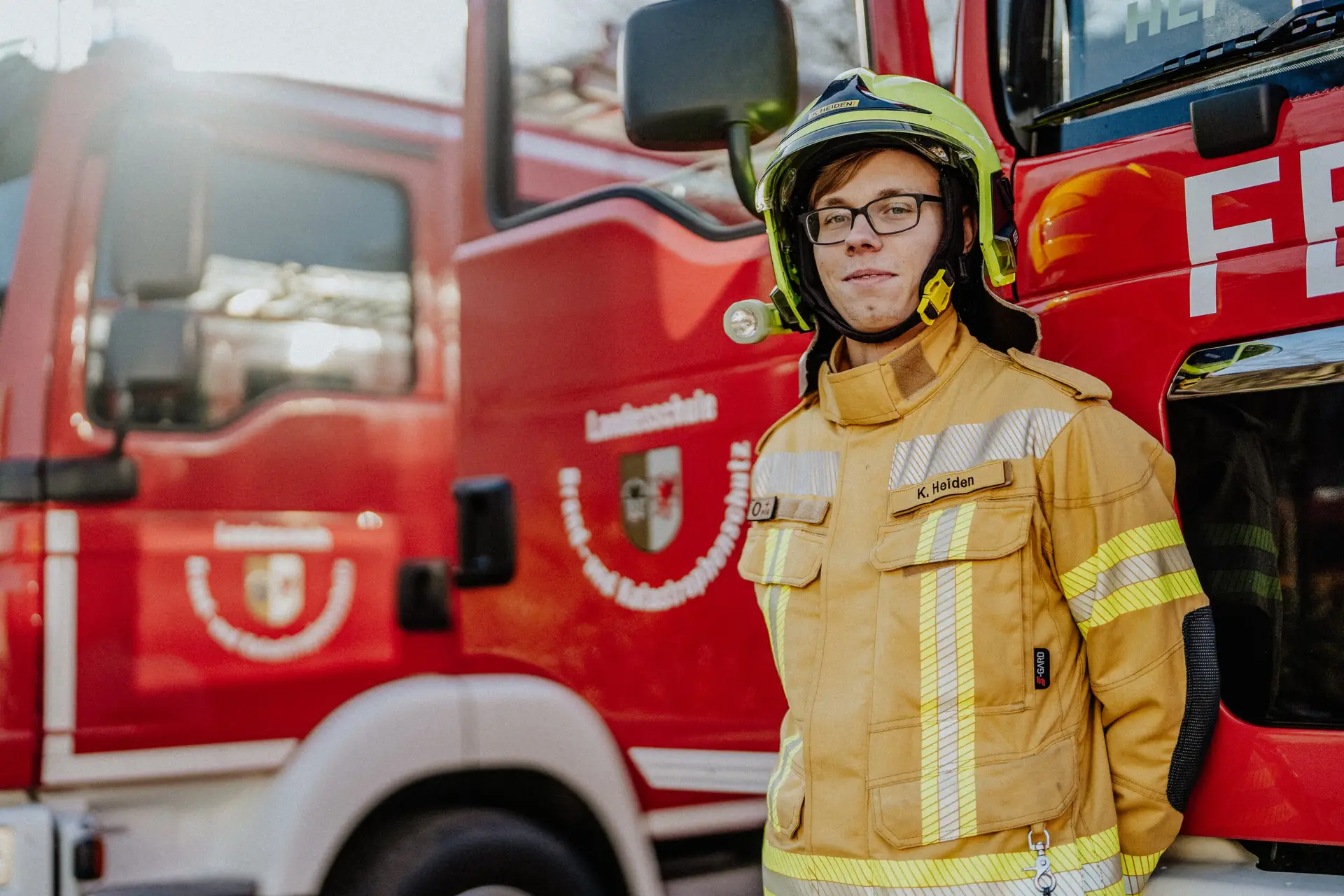 Portraitfoto Feuerwehrmann während Schulung an der Landesschule für Brand- und Katastrophenschutz 2024